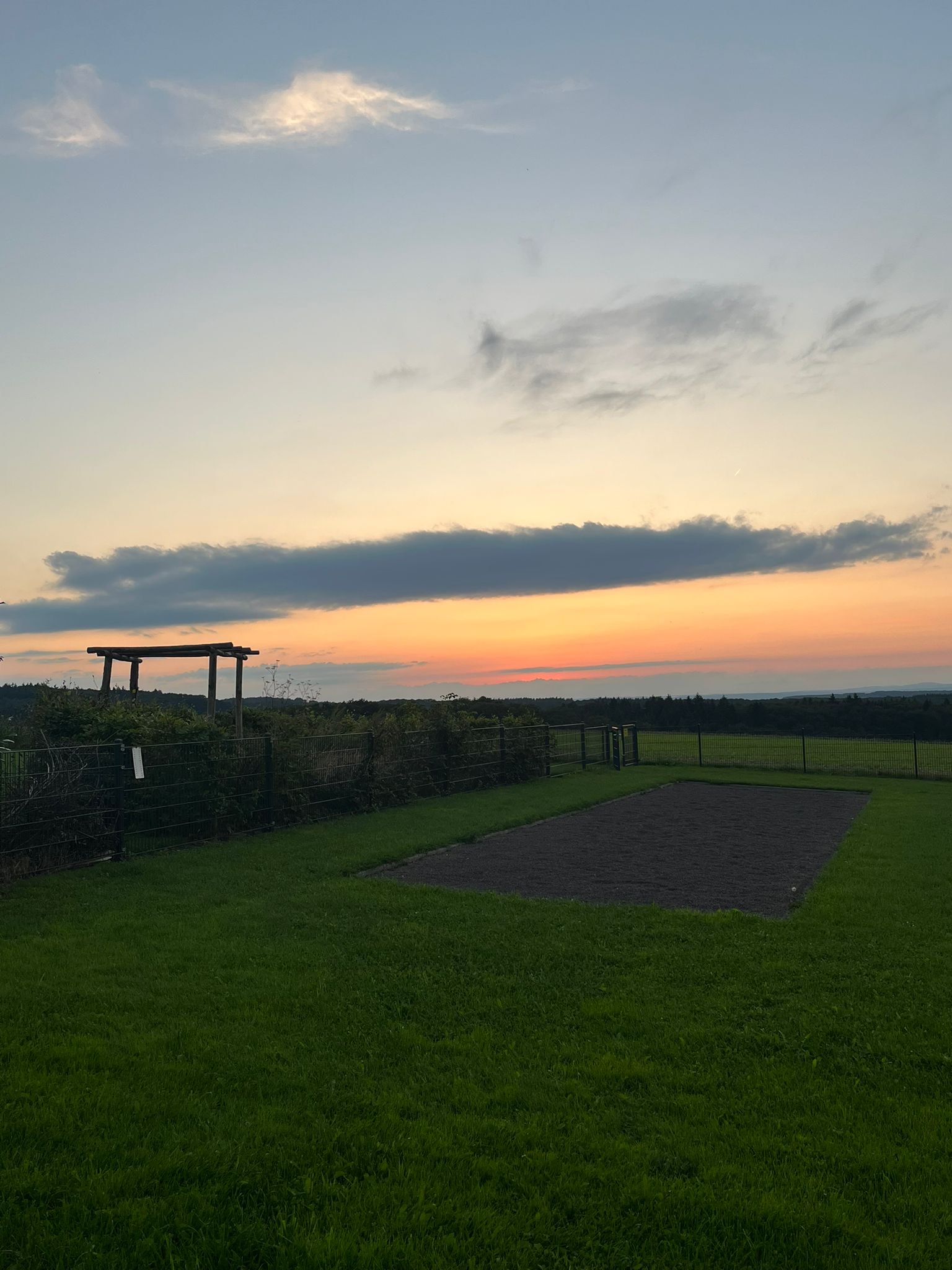 Geniet van de rust, ruimte en het eindeloze uitzicht van dit unieke natuurhuisje. De woning met tuin van maar liefst 1200 m2 heeft een prachtig uitzicht van zo’n 50 km ver over de Hunsrück tot aan de Eifel. Je ziet niets anders dan uitgestrekte weilanden, bossen en indrukwekkende zonsondergangen.